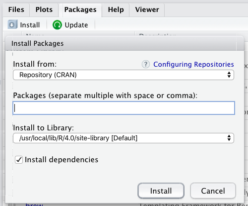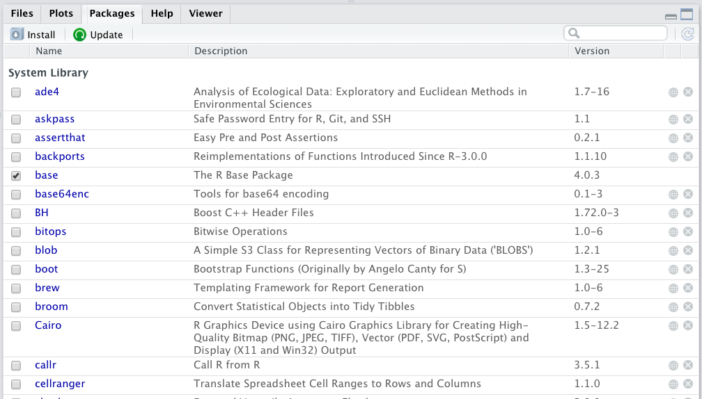 library() with installed packagesIf you click on the package name, you can see what are its commands