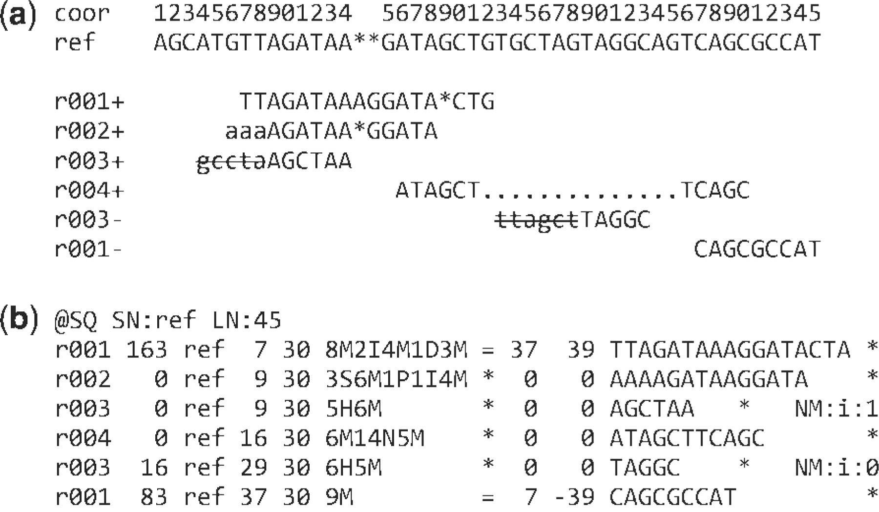 Heng Li, Bob Handsaker, Alec Wysoker, Tim Fennell, Jue Ruan, Nils Homer, Gabor Marth, Goncalo Abecasis, Richard Durbin, 1000 Genome Project Data Processing Subgroup, “The Sequence Alignment/Map format and SAMtools”, Bioinformatics, Volume 25, Issue 16, 15 August 2009, Pages 2078–2079, https://doi.org/10.1093/bioinformatics/btp352