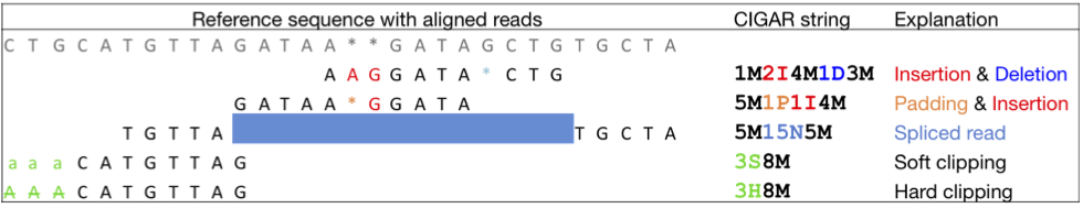 | H | Hard clipping (clipped sequences are NOT present in the alignment record); |