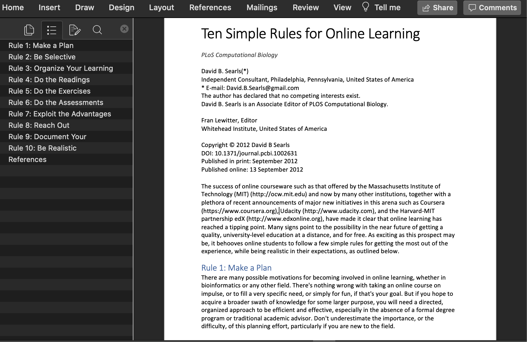 \title{Ten Simple Rules for Online Learning}